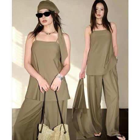 キャミソール、ショーツ、ワイドパンツ、スカーフの4点セットです。