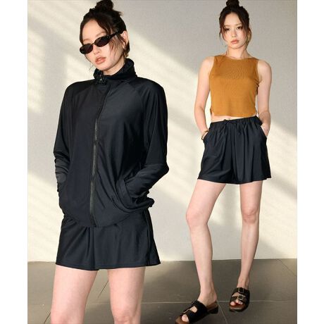 洋服のように気軽に着られるスポーティカジュアルデザインのセット水着。