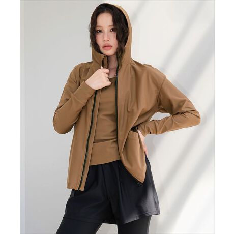 ファスナーを上まで閉めると首元もしっかり覆うハイネックデザインで、本気の日焼け対策に向いています。
