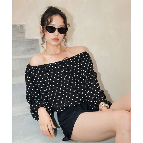 大胆にデコルテをアピールできるトップスは、首回り、裾、袖口の伸縮性が高く、ノンストレスな着心地が◎