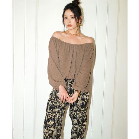 大胆にデコルテをアピールできるトップスは、首回り、裾、袖口の伸縮性が高く、ノンストレスな着心地が◎