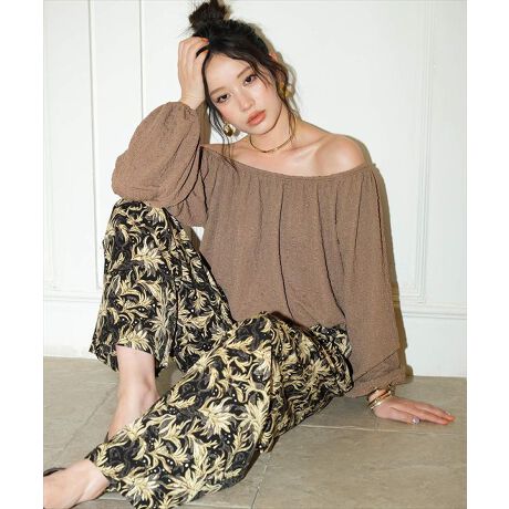 オリエンタルなムードが目を惹くロングパンツは、涼し気なさらっとした生地が魅力。