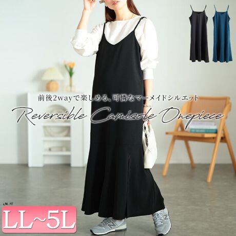【大きいサイズ】 前後2wayマーメイドキャミソールワンピース 大きいサイズ レディース