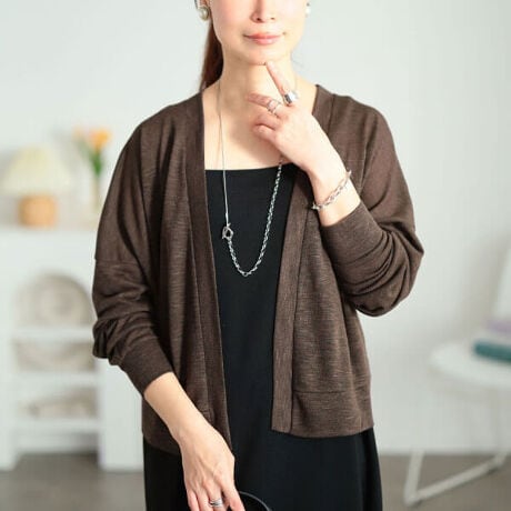 どんなコーデにも馴染むシアースラブクロップドボレロ☆大人気クロップド丈アイテムから待望のカーディガン登場!クロップド丈でワンピ・スカート・パンツ何と合わせてもGOODバランスにコーデがキマる♪ゆったりシルエットのトッパーデザインなのでバストが大きめの方も安心◎ナチュラルな透け感と抜け感のある後ろ姿で季節感高まる装いに!夏場は紫外線・冷房対策アイテムとしても◎