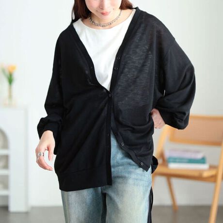 季節の切り替えから長く重宝する!Vネックボリューム袖スラブカーディガン☆ドロップショルダーとボリュームスリーブのゆったりシルエットでリラクシーな着心地◎体型を拾わないゆるっとラフなサイズ感で女性らしい華奢感を演出♪カーデとしてはもちろんボタン開閉アレンジでトップスとしてもお楽しみいただけます◎いつものコーデにサッと羽織るだけで透け感が季節感を演出♪夏場は紫外線・冷房対策としても持ち歩きたいオススメの一着です☆