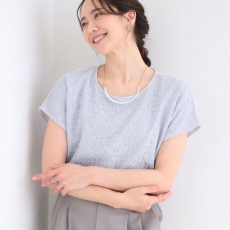 【ひんやりUVカット】機能付き 華やかレースTシャツ