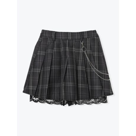 チェーンディテールがアクセントになるインナーパンツ付きプリーツスカート。