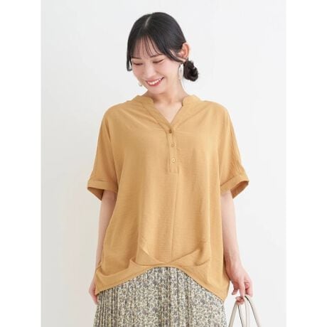 ・スキッパーネックデザインが顔回りをスッキリ見せ、抜け感を演出。