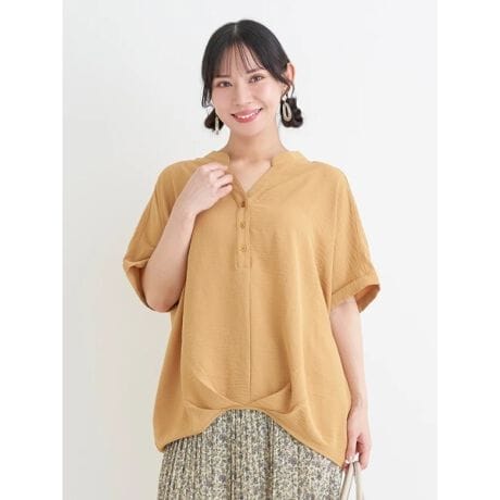 ・スキッパーネックデザインが顔回りをスッキリ見せ、抜け感を演出。