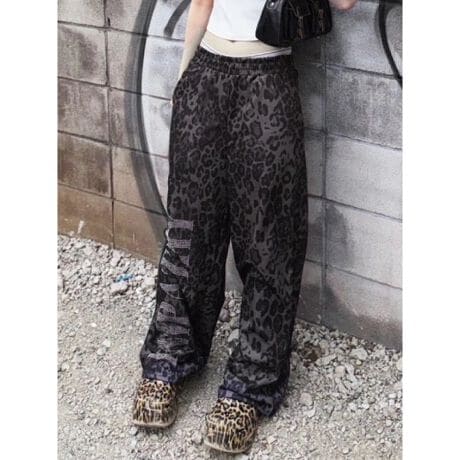 ラインストーンで描かれた英字ロゴが煌びやかなアクセントになるパンツ。