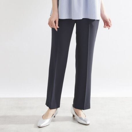 シンプルなデザインにセンタープレスを施し、脚のラインをきれいに演出してくれます。