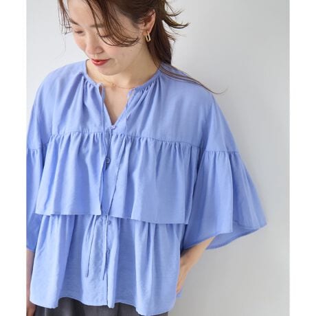 揺れ感のあるシルエットに二の腕をすっぽり覆う袖丈で柔らかく女性らしい雰囲気に仕上がります。
