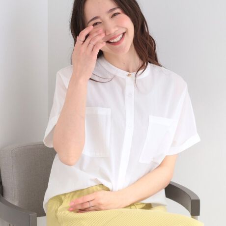 通気性に富んだ軽やかな素材で、ベーシックにも着れる胸ポケット付きのブラウス。