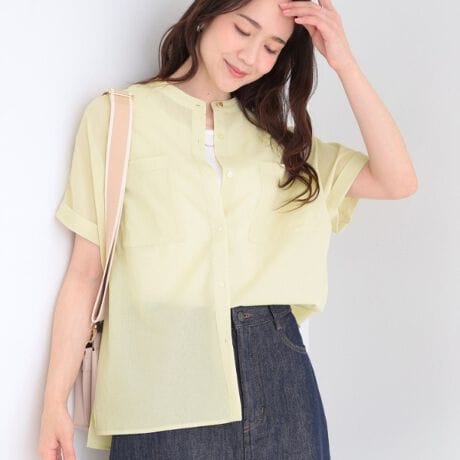 通気性に富んだ軽やかな素材で、ベーシックにも着れる胸ポケット付きのブラウス。