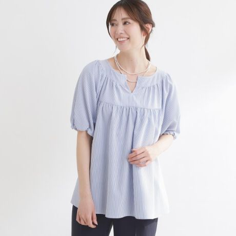 ふんわりと広がるシルエットが軽やかで、体のラインを拾いにくく優しく包み込みます。
