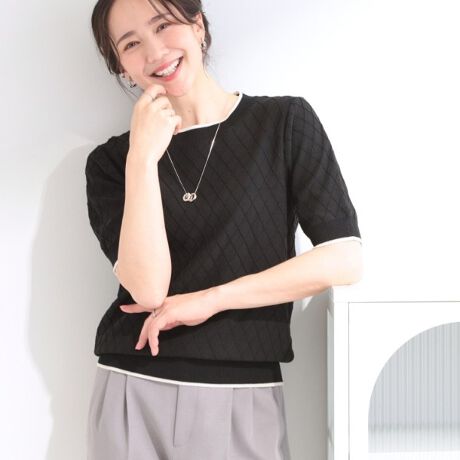 ダイヤの編み柄が今年らしいハーフ袖のニットが登場。