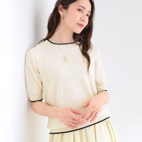 ダイヤの編み柄が今年らしいハーフ袖のニットが登場。