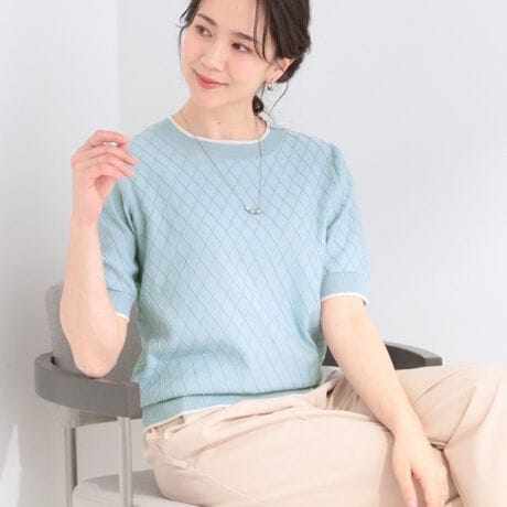 ダイヤの編み柄が今年らしいハーフ袖のニットが登場。