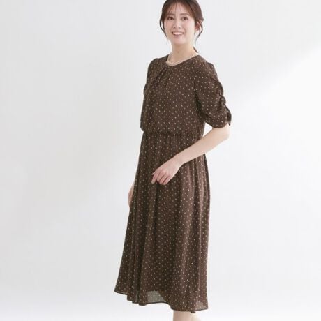 軽やかなジョーゼット素材に小紋柄をプリントしたワンピース。