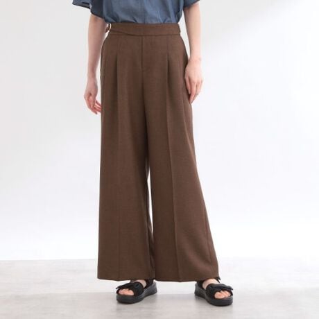 ワイドパンツになりますが、前後にセンタープレスを入れているので、きれいめ通勤スタイルにも活躍する一枚です。