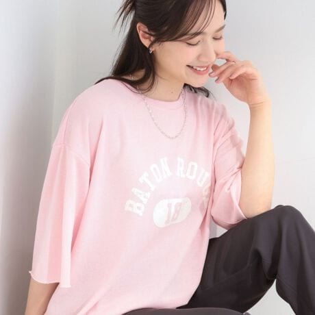 トレンド感のあるシアー裏毛素材を使用した5分袖が、さりげないお洒落感を演出。