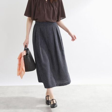 端正なシルエットできちんと感がありつつ、軽やかに着られるセミフレアスカート。