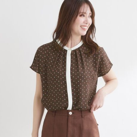 衿元に入れたタックがほどよい立体感を生み、シンプルながら上品なデザインになっています。