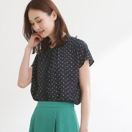 繊細な小紋柄をあしらったジョーゼット素材のブラウス。