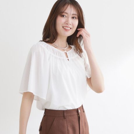 ほどよくゆとりのあるシルエットと軽やかなフレアスリーブで、気になる二の腕をさりげなくカバーし、一枚で着映えするデザインに仕上げました。