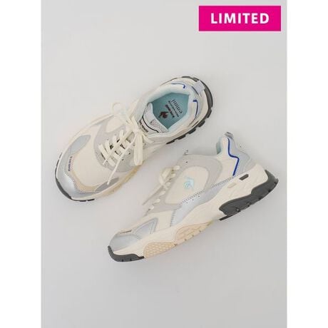 ブランドのアーカイブモデルから再設計されたアイコニックなサイドパーツを採 用し、クッション性と安定感を楽しめるBASQUEのマテリアルをリップ生地と マット合皮にチェンジ。 ブルーやシルバーをアクセントに厚底ながらさわやかな 印象に昇華したemmi別注デザイン。