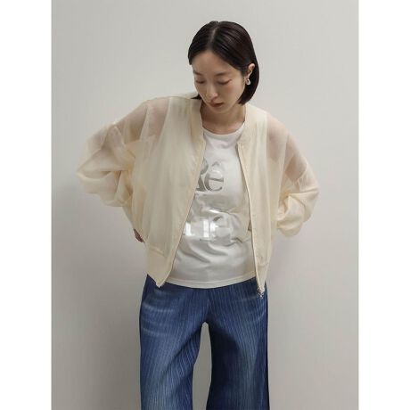 シアー素材とニットを組み合わせた、異素材ドッキングデザインが魅力のブルゾン。