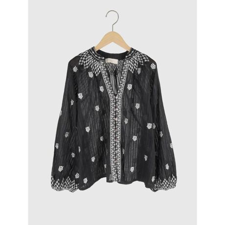 繊細な刺繍が目を引く、軽やかなコットンブラウス。