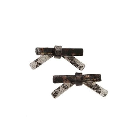クリアな樹脂素材に繊細なレースプリントを挟み込んだ、夏らしい涼しげな存在感のリボンヘアピン2本セットです。