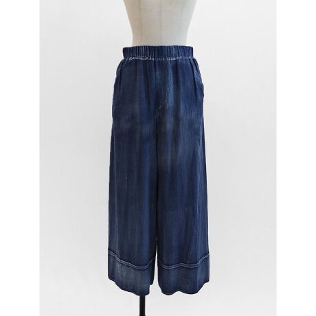 ・落ち感のあるシルエットで脚のラインを自然にカバーし、ウエストは総ゴム仕様でストレスフリーな履き心地に。