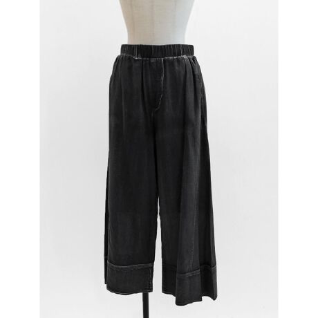 ・落ち感のあるシルエットで脚のラインを自然にカバーし、ウエストは総ゴム仕様でストレスフリーな履き心地に。