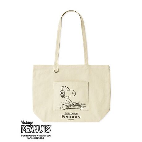 『Mila Owen』と、75周年のアニバーサリーを迎えている『PEANUTS』がコラボレーション。スヌーピーがDJをしているシーンをプリントした、キャンバスのトートバッグは、長めの肩ストラップがうれしいポイント。肩掛けしやすく、アームホールの大きな服にも合わせやすいので、メインバッグとしても活躍します。