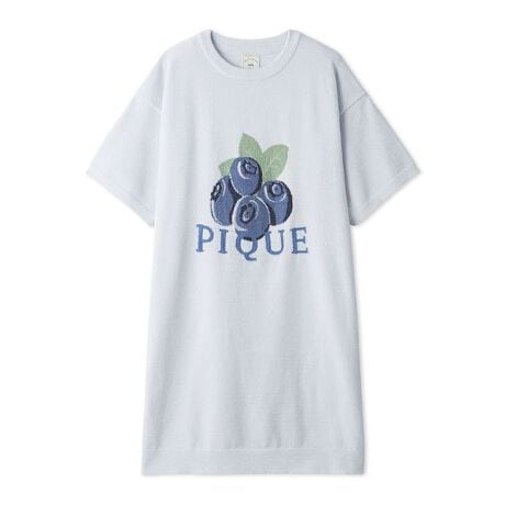 オレンジ・チェリー・ブルーベリーの3つのモチーフを、夏らしくみずみずしいタッチで描いたフルーツジャガードのニットシリーズ。素肌にとろけるような肌触りをお楽しみいただける’スムーズィー’を使用したワンピースです。大きめに描いたフルーツは、ひとつではなく複数個がぎゅっと寄り添うキャッチーな絵柄がポイント。piqueのロゴはそれぞれのイメージに合うフォントで表現しました。1枚でさらっと着用可能な、ゆったりしたサイズ感と長すぎない丈感で仕上げています。色はオレンジとピンク、ブルーの3色展開。同シリーズの雑貨や寝具と合わせてもお楽しみいただけます。