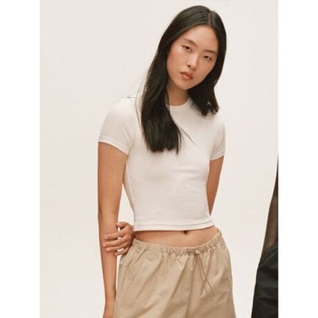「Rib Baby-T Gloria」は、ミニマルながら女性らしさを引き立てる一枚。