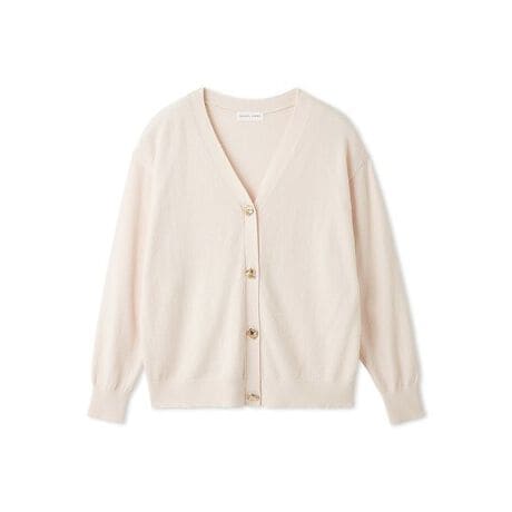 定番的なシルエットで合わせやすい、Vネックのカーディガン。