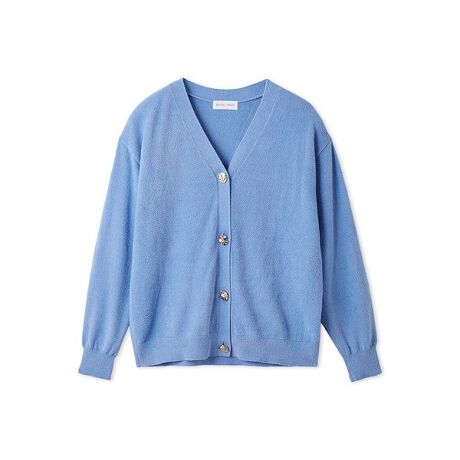定番的なシルエットで合わせやすい、Vネックのカーディガン。