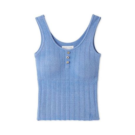 コンパクトなシルエットに、有機的なフォルムの小さな飾りボタンが映える、カップインタイプのタンクトップ。