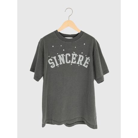 パールの飾りのアクセントが華やかなロゴTシャツ。