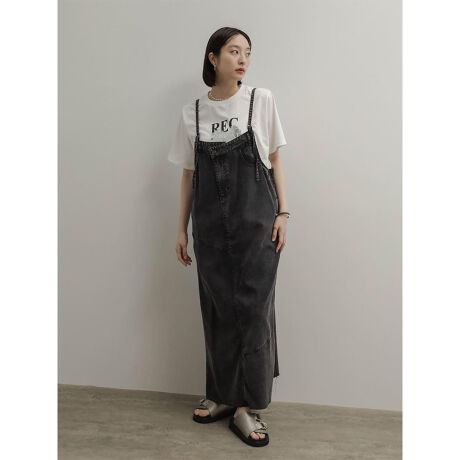 ヴィンテージライクな風合いに仕上げたデニムジャンパースカート。