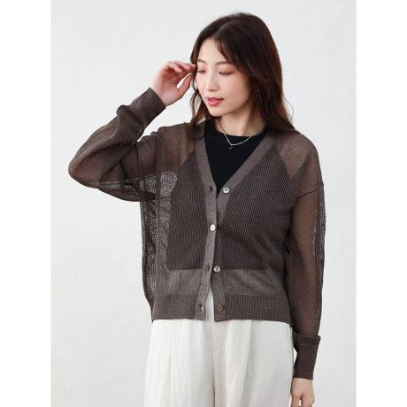 透け感のあるメッシュ素材にきらっと光るラメが華やかなカーディガン。