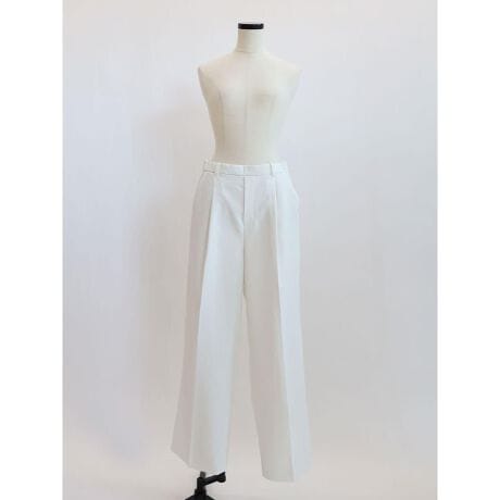 スッキリとしたワイドなシルエットが特徴のタックワイドパンツ。ウエスト位置からタックを施し、センタープレスを入れることで腰回りから足元まですっきりと見せてくれます。後ろウエストのゴムが窮屈感の無い着用感を与え、大人のデイリースタイルに寄り添います。