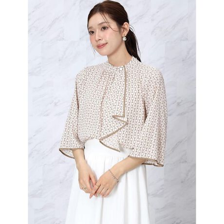 スカーフタイが映えるデザインで、女性らしい品格を漂わせるジオメトリック柄ブラウス。