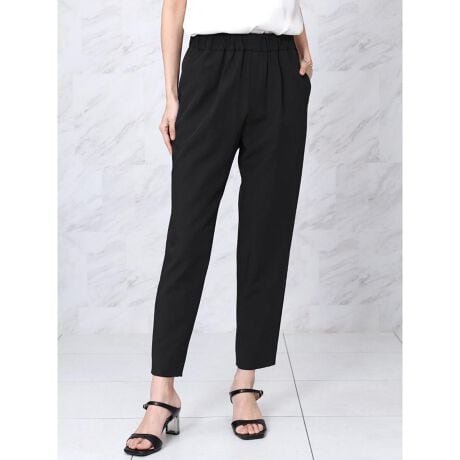 裾に向かってすっと細くなるテーパードシルエットで自然な美脚見えを叶えます。
