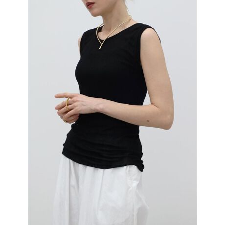 柔らかく、優しく身体にフィットするリブデザインとストレッチ性が着心地の良いタンクトップ。とろみのある素材感が大人らしく上品な印象に仕上がり、モードな装いにもマッチ。1枚着としてはもちろん、ジャケットやジレのインナーアイテムとしても活躍する万能アイテムです。