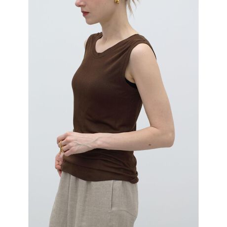 柔らかく、優しく身体にフィットするリブデザインとストレッチ性が着心地の良いタンクトップ。とろみのある素材感が大人らしく上品な印象に仕上がり、モードな装いにもマッチ。1枚着としてはもちろん、ジャケットやジレのインナーアイテムとしても活躍する万能アイテムです。
