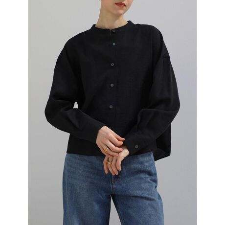 表面の微光沢がワンランク上の大人コーデに仕上げてくれるシャツブラウス。首元はすっきりとしたノーカラーで仕上げ、顔まわりをシャープに演出。肩線をやや落としたリラックス感のあるシルエットが体のラインを拾わず、自然と生まれる丸みが女性らしさをさりげなく引き立てます。ボトムスを選ばずシンプルながらもさりげない存在感を漂わせるアイテムです。